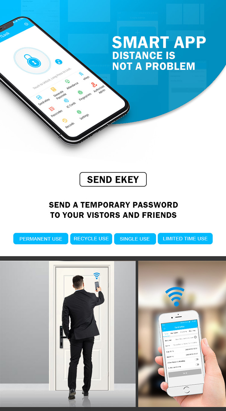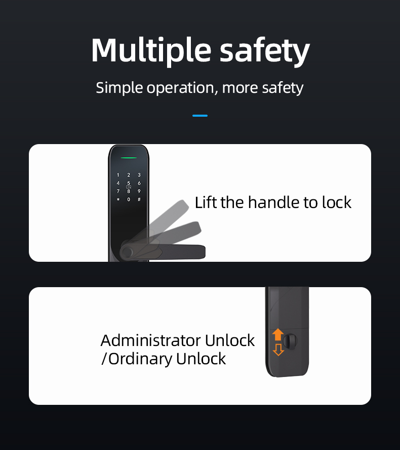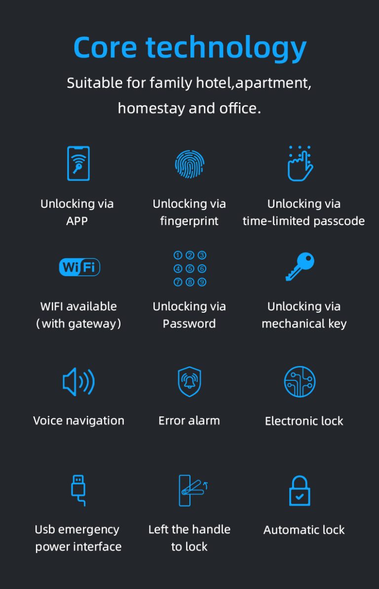 This smart door lock has a the latest fingerprint recognition technology. It recognizes your fingerprint in less than 1 second. Very efficient.